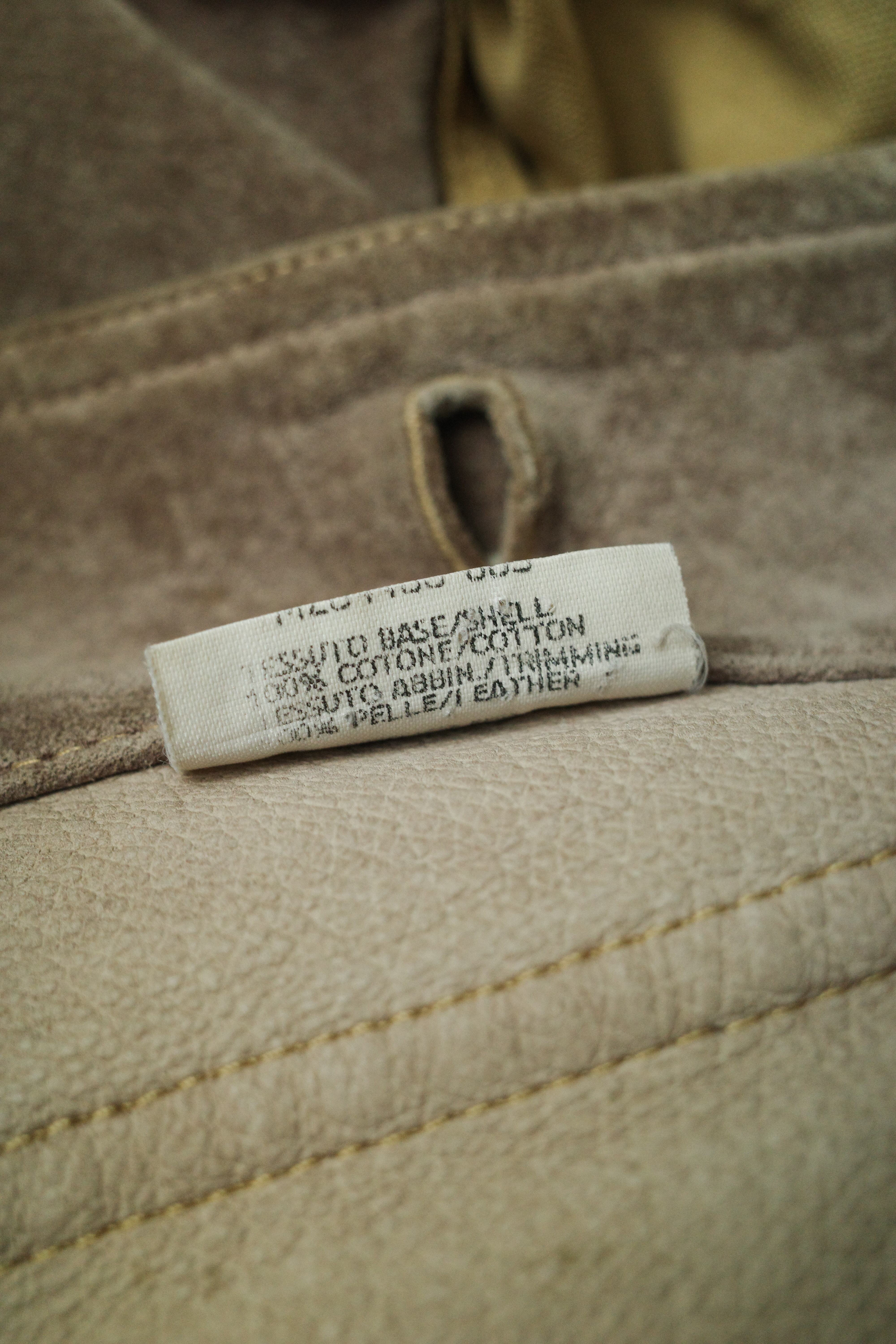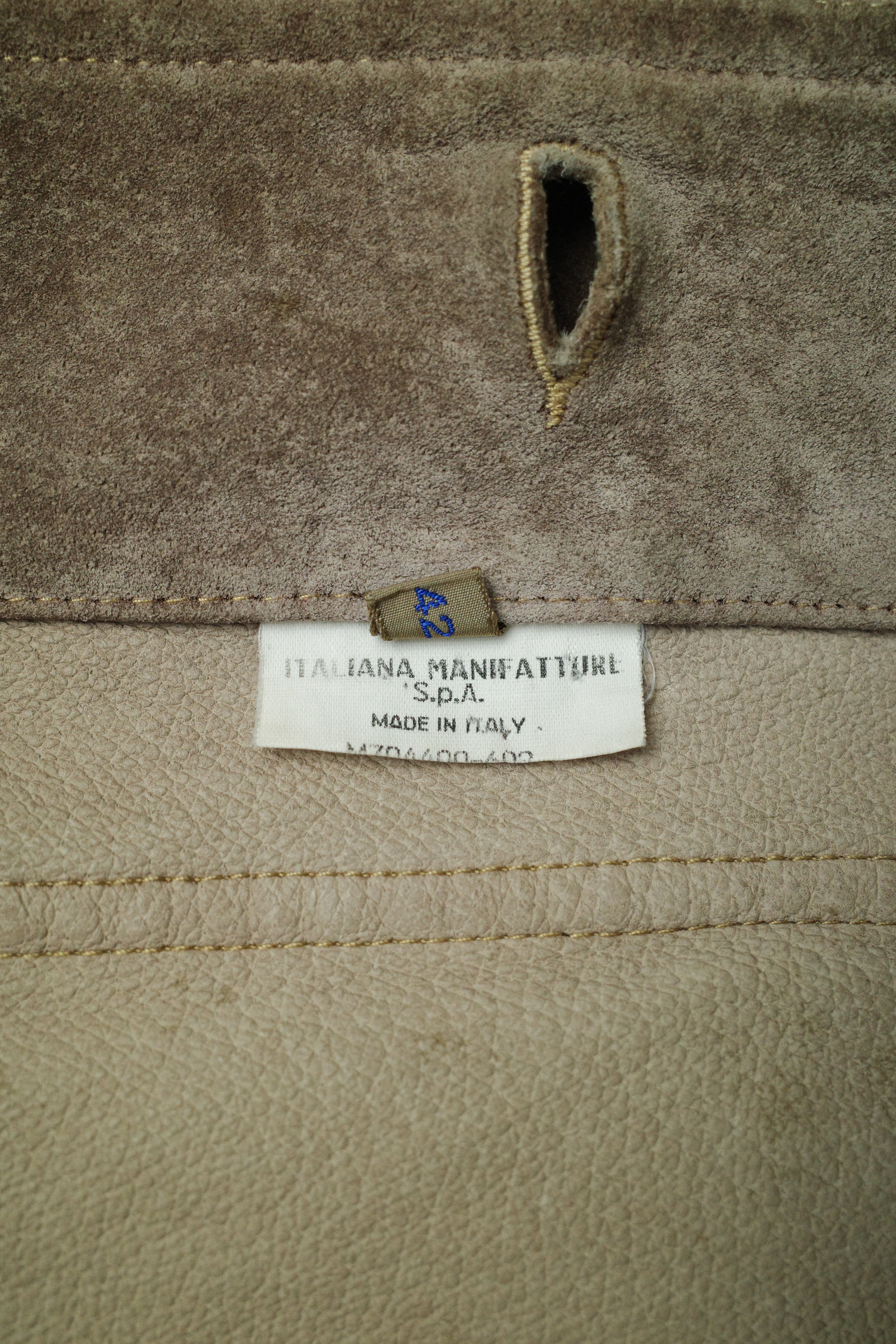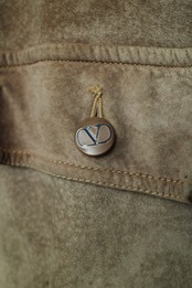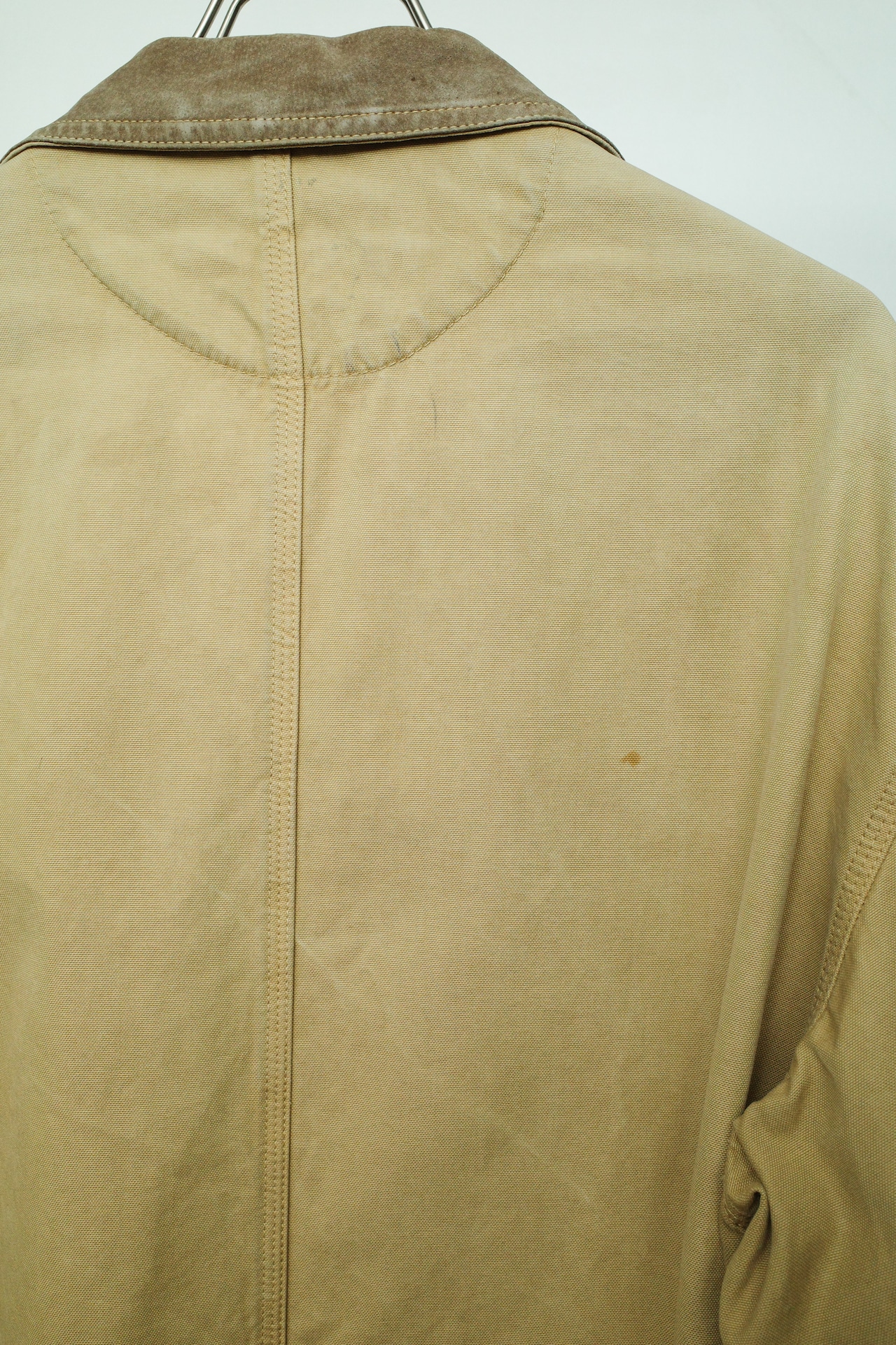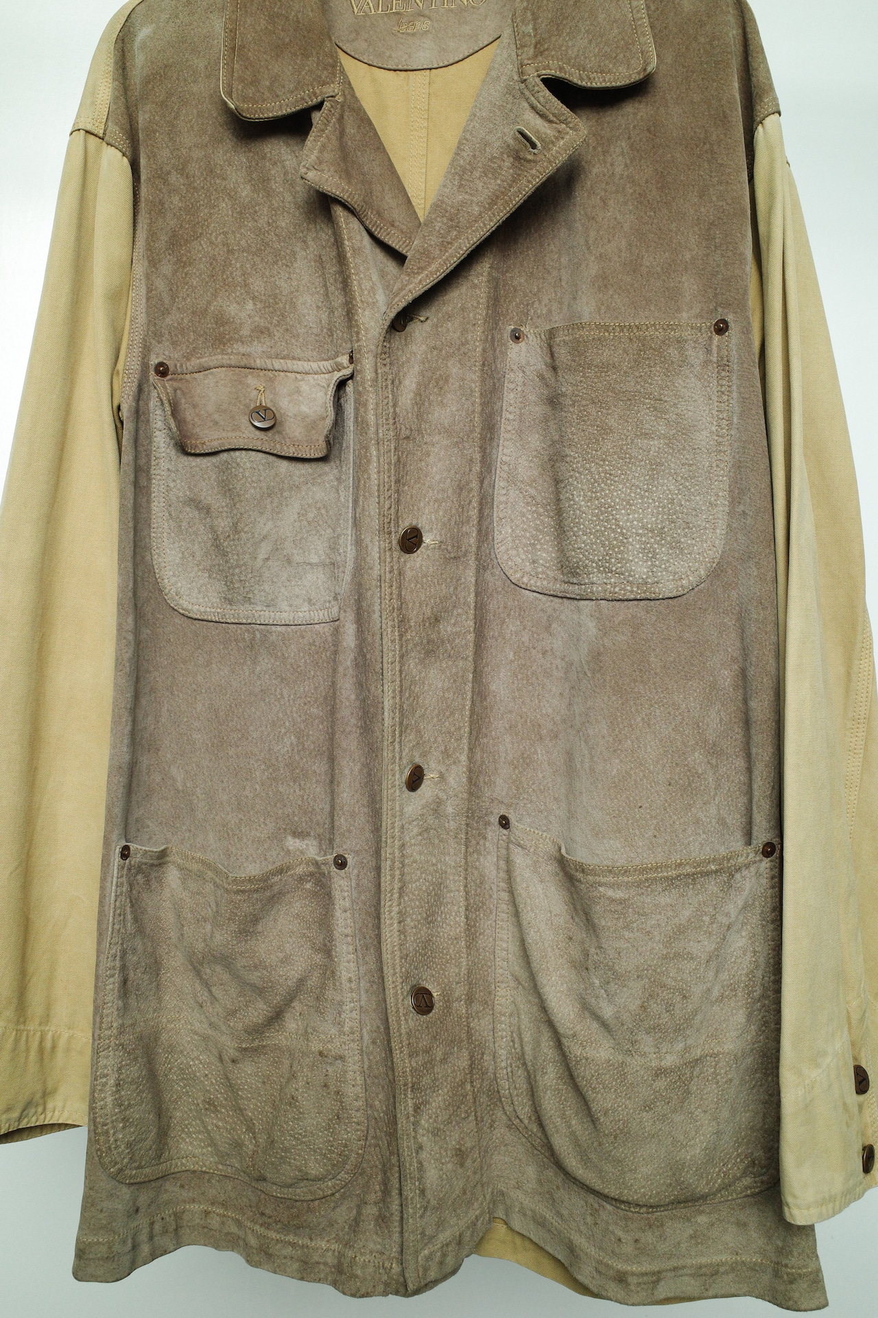 アメリカンヴィンテージのカバーオールをデザインソースに、フロントはピグスキンスエード、バックや袖はコットンダック生地に切り替えられています。