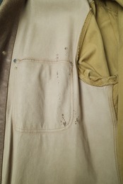 下部ポケットや首裏、右肩甲骨付近、左袖先、右胸ポケット裏地に薄いシミがございますが、ヴィンテージに慣れている方であれば問題なく着用していただける状態です