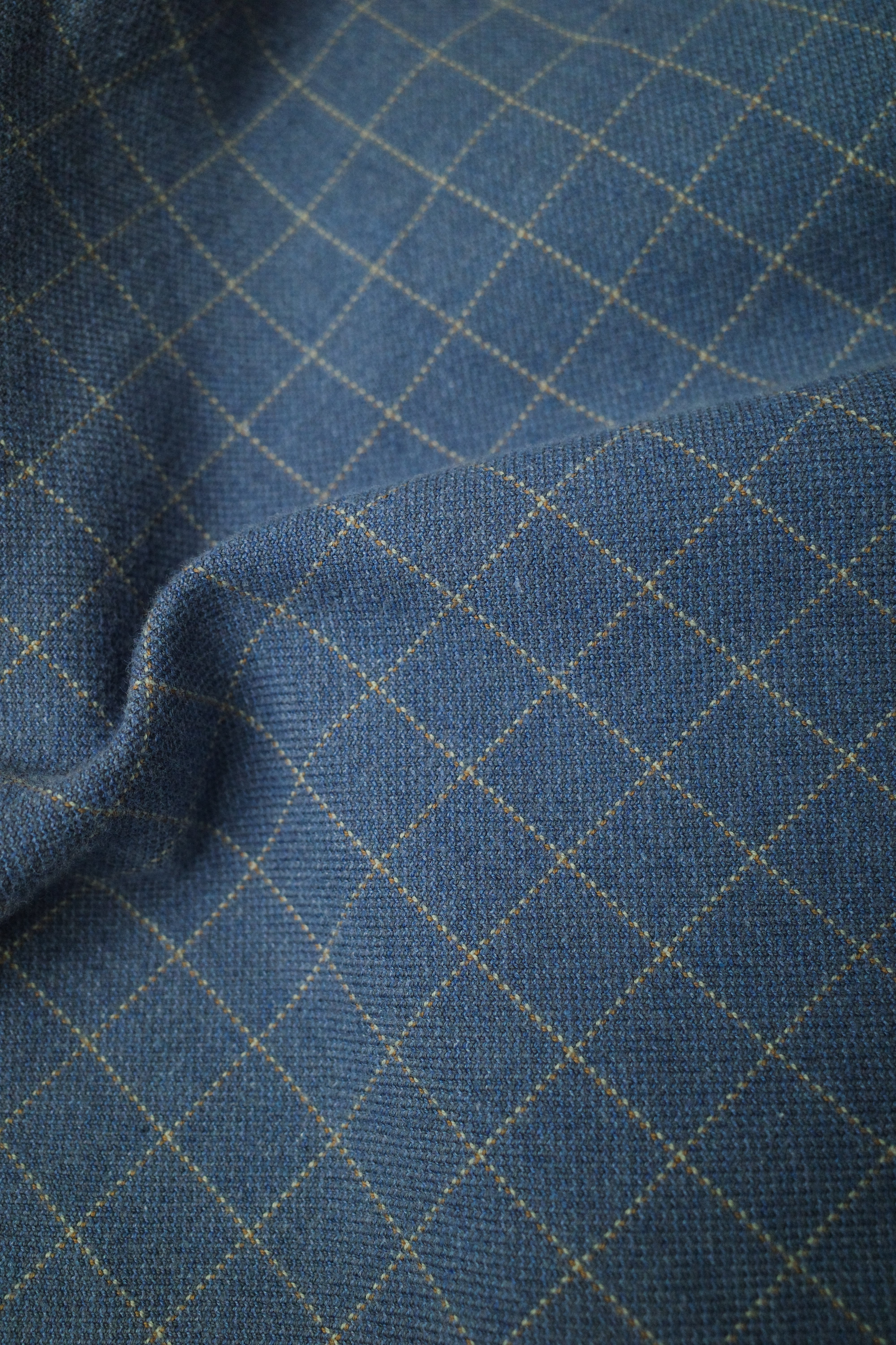 ライトブルーボディに、ホワイト・オレンジの糸が交わる綺麗なチェック柄。