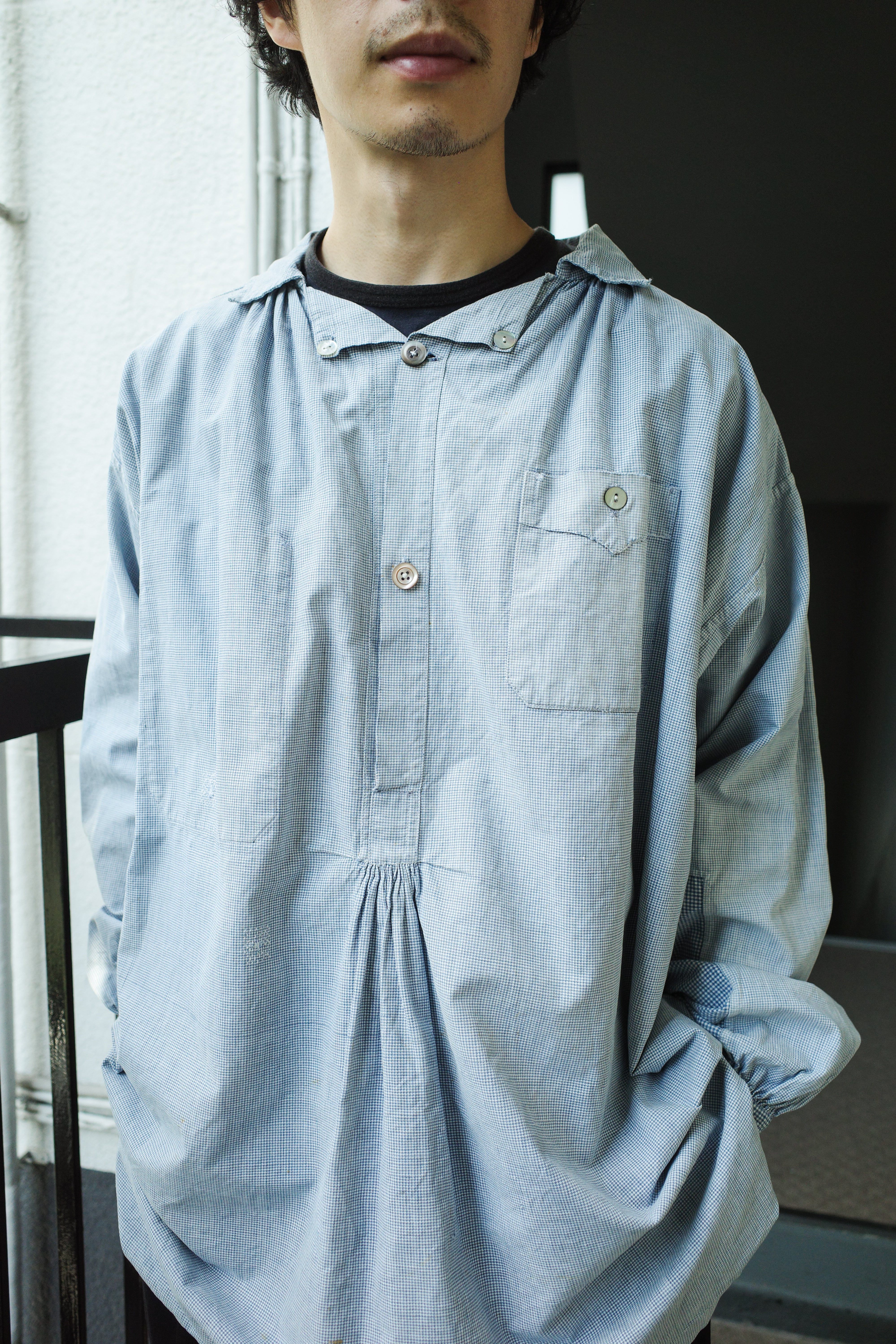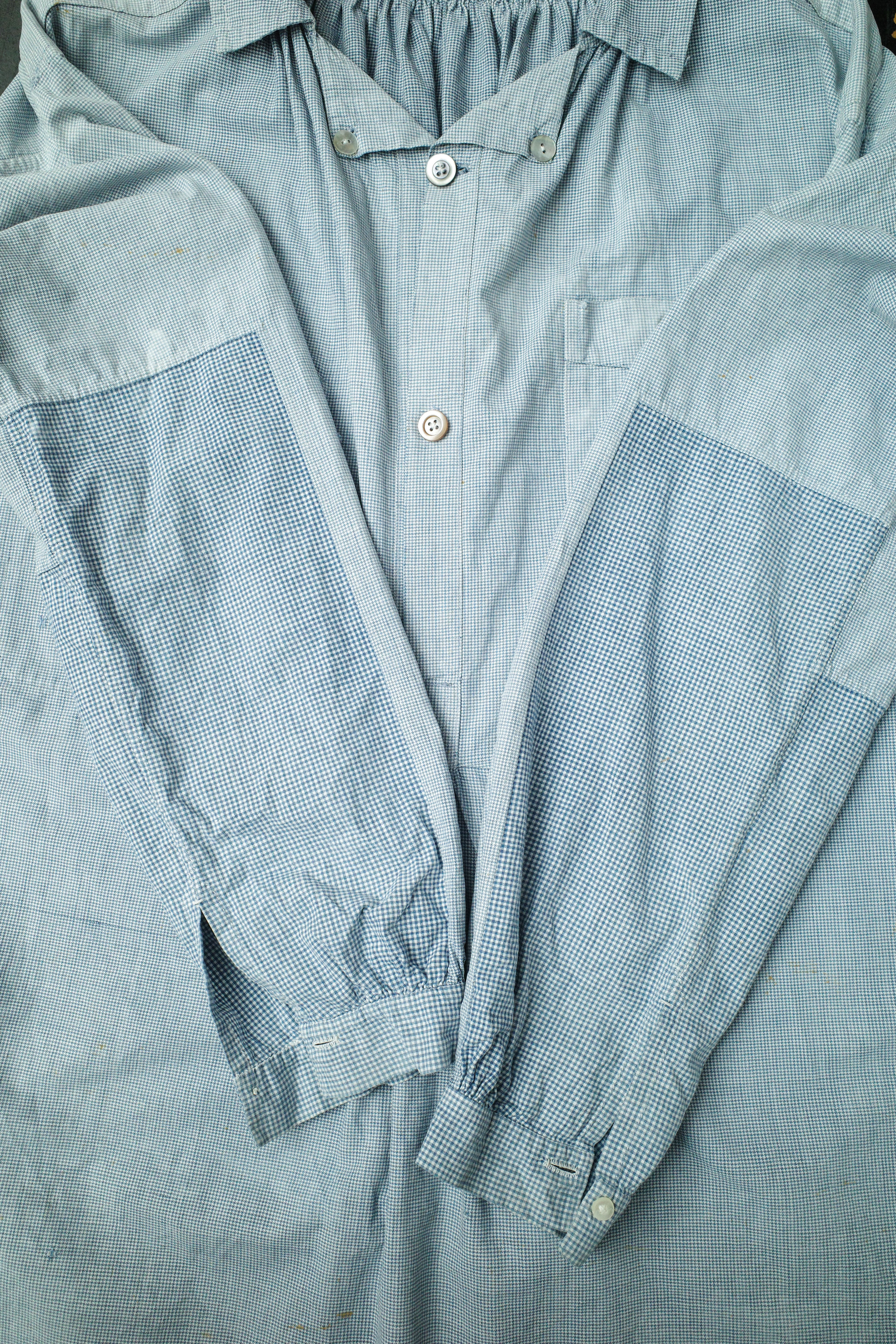 滑らかな高密度コットン生地や、古いシェルボタン、細かく入ったギャザーなど、当時ならではのディテールをぜひお楽しみください。
