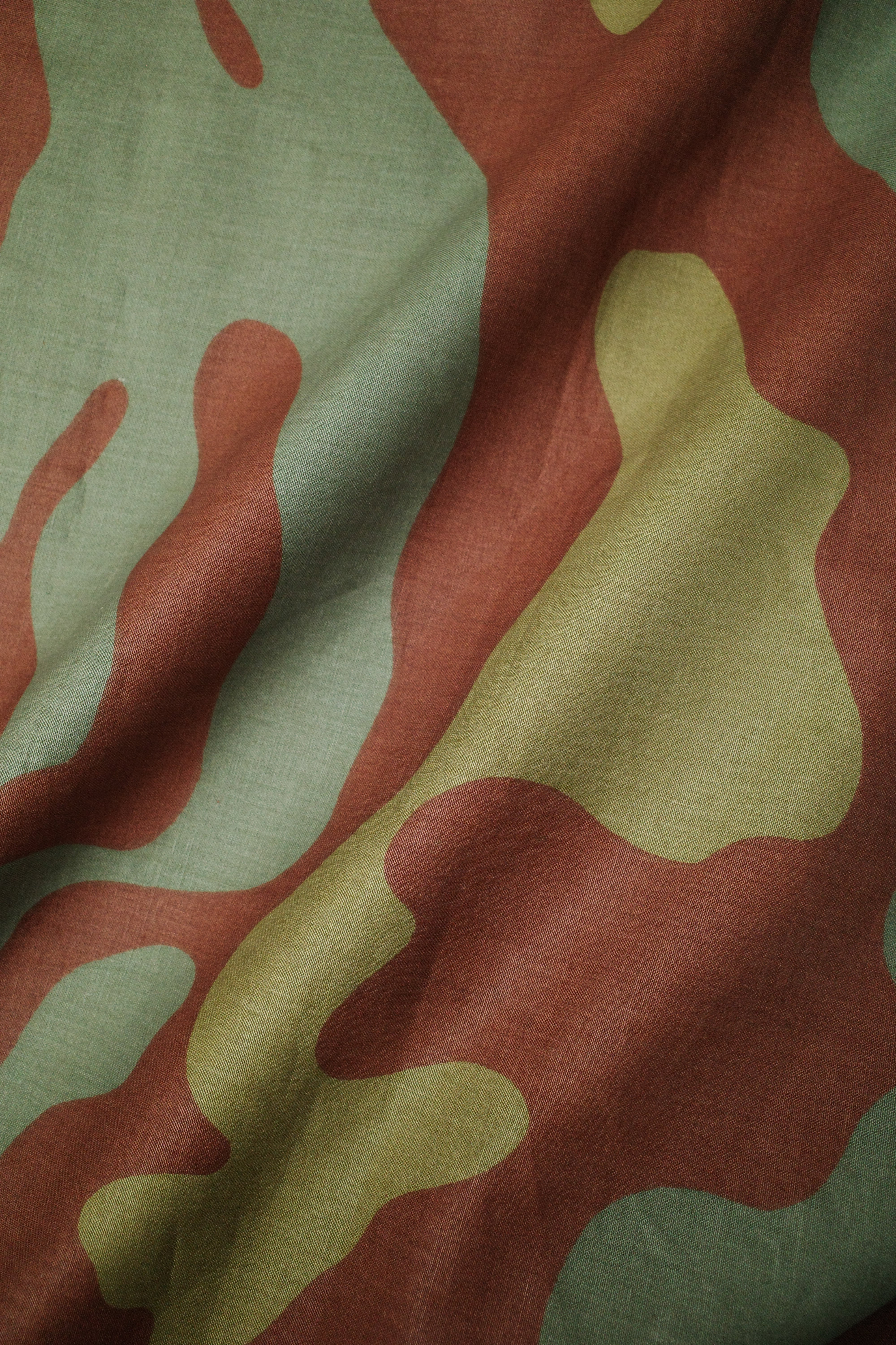 落ち着いたダークグリーンをベースに、ブラウンレッド、ダークイエローが合わさった、イタリアの伝統的な迷彩"サンマルコカモ"。